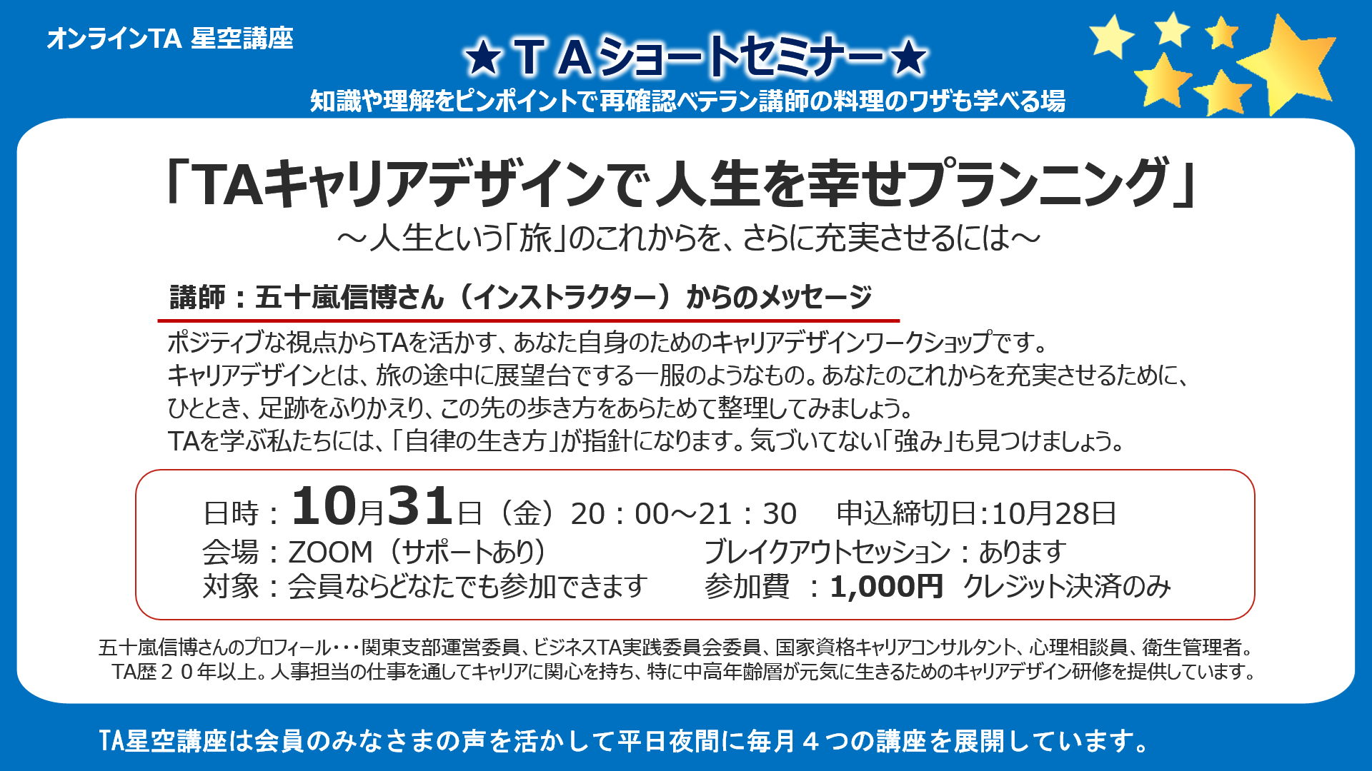「TAキャリアデザインで人生を幸せプランニング」~人生という「旅」のこれからを、さらに充実させるには~