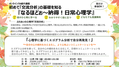 初めての方向け 交流分析体験講座(無料)